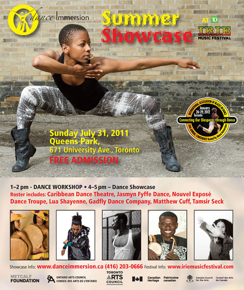 Come enjoy some dance performances from Toronto’s own at the danceImmersion Summer Showcase happening in the Irie Music Festival.